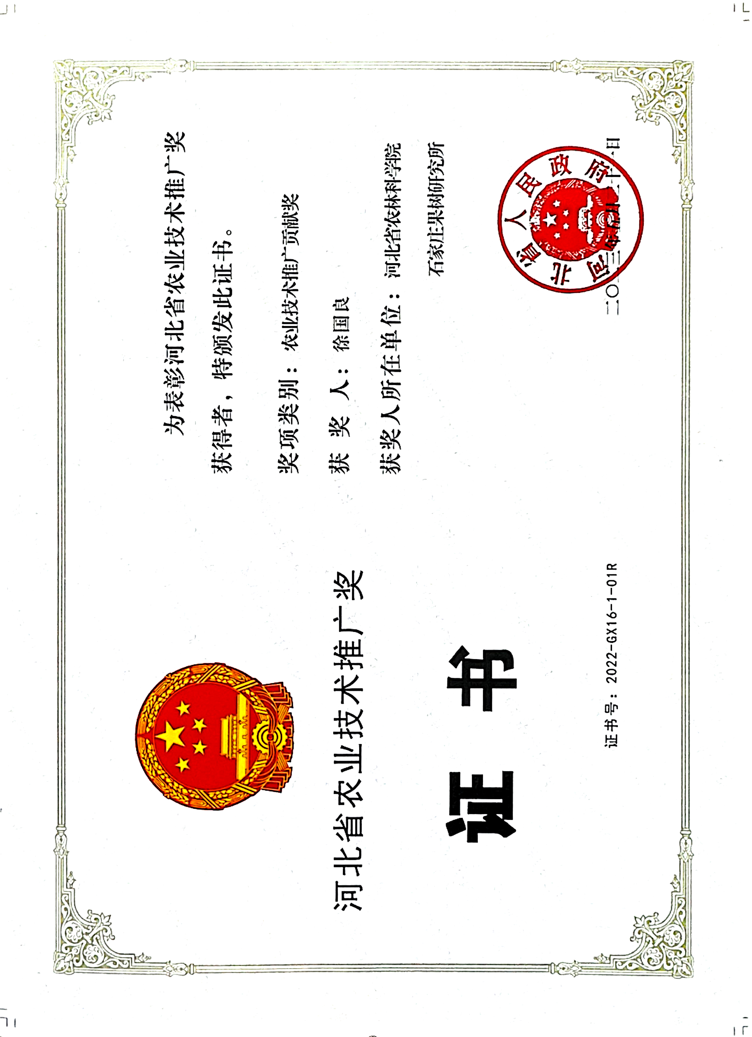 • 徐国良研究员荣获省政府农业技术推广贡献奖